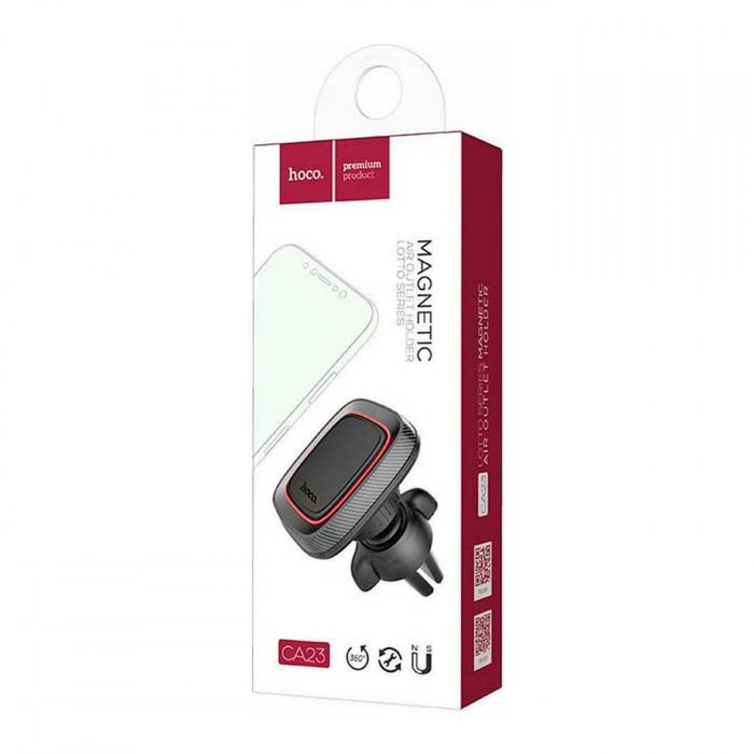 Βάση κινητού αυτοκινήτου της εταιρείας Hoco. Πρόκειται για τον πιο διαδεδομένο τύπο βάσης καθώς στηρίζεται στον αεραγωγό του κλιματισμού ή του καλοριφέρ αυτοκινήτου. Η στήριξη της συσκευής στη βάση γίνεται με μαγνήτη τον οποίο μπορείτε να κολλήσετε είτε στη συσκευή σας είτε στη θήκη της.