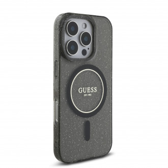 Guess PU Fixed Glitter 4G Metal Logo Case για iPhone 16 Μαύρο