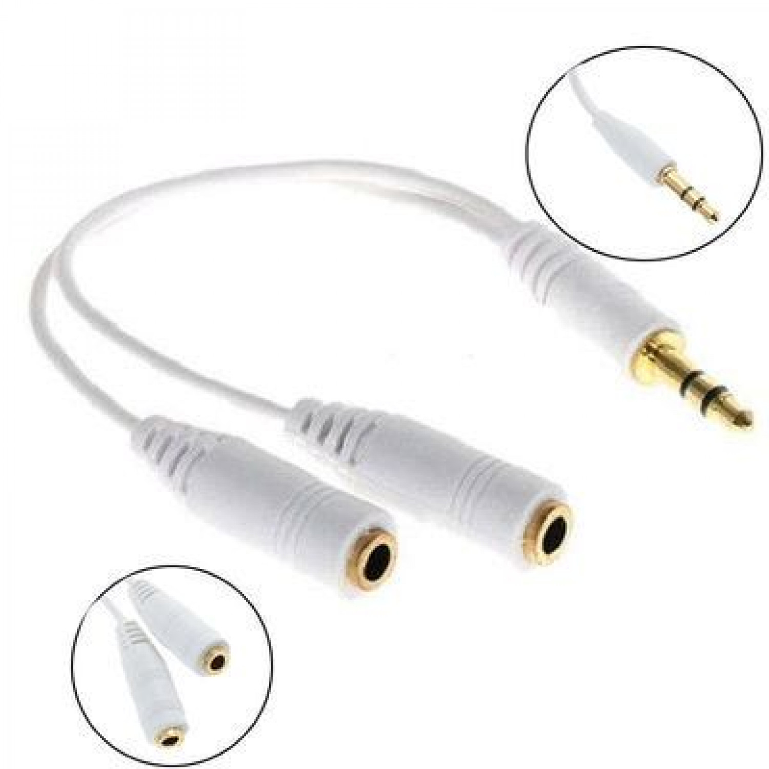 Καλώδιο 1 x male to 2 x female 3.5mm Audio Jack to Headphone Microphone Splitter Converter Adaptor Λευκό