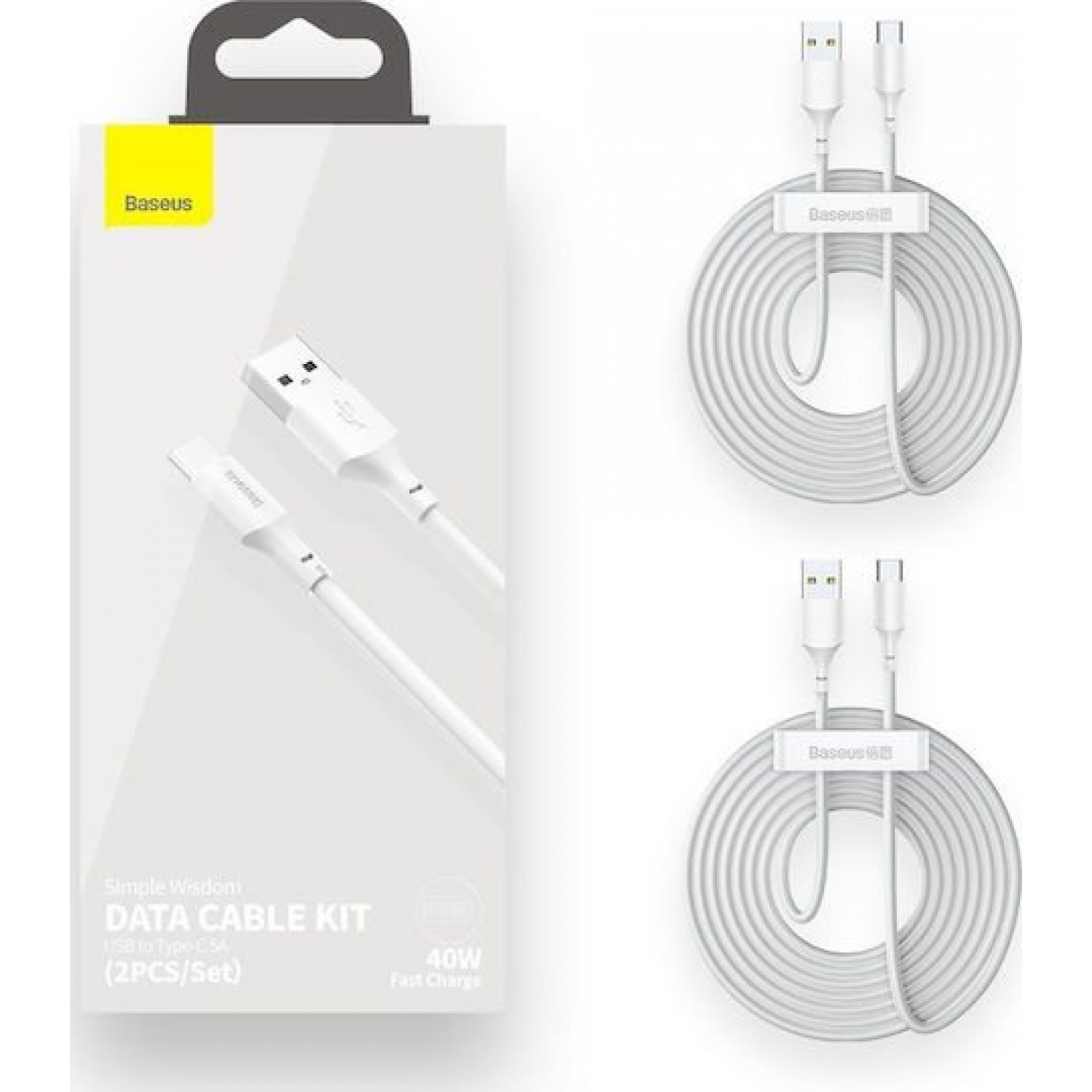 Baseus Simple Wisdom USB 2.0 Cable USB-C male - USB-A 40W Λευκό 1.5m