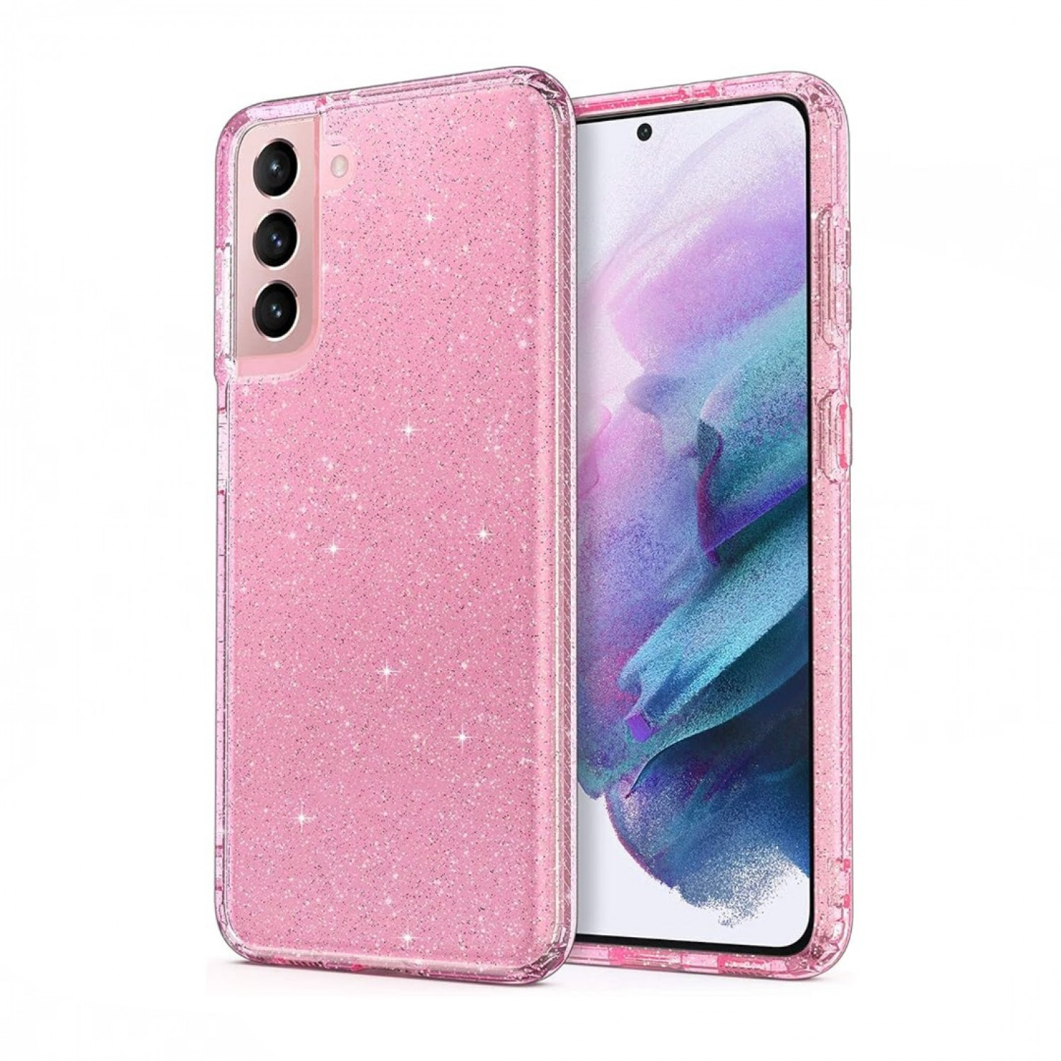 OEM Back Cover Θήκη Λεπτής Σιλικόνης με Glitter για Samsung Galaxy S21 Plus Ρόζ